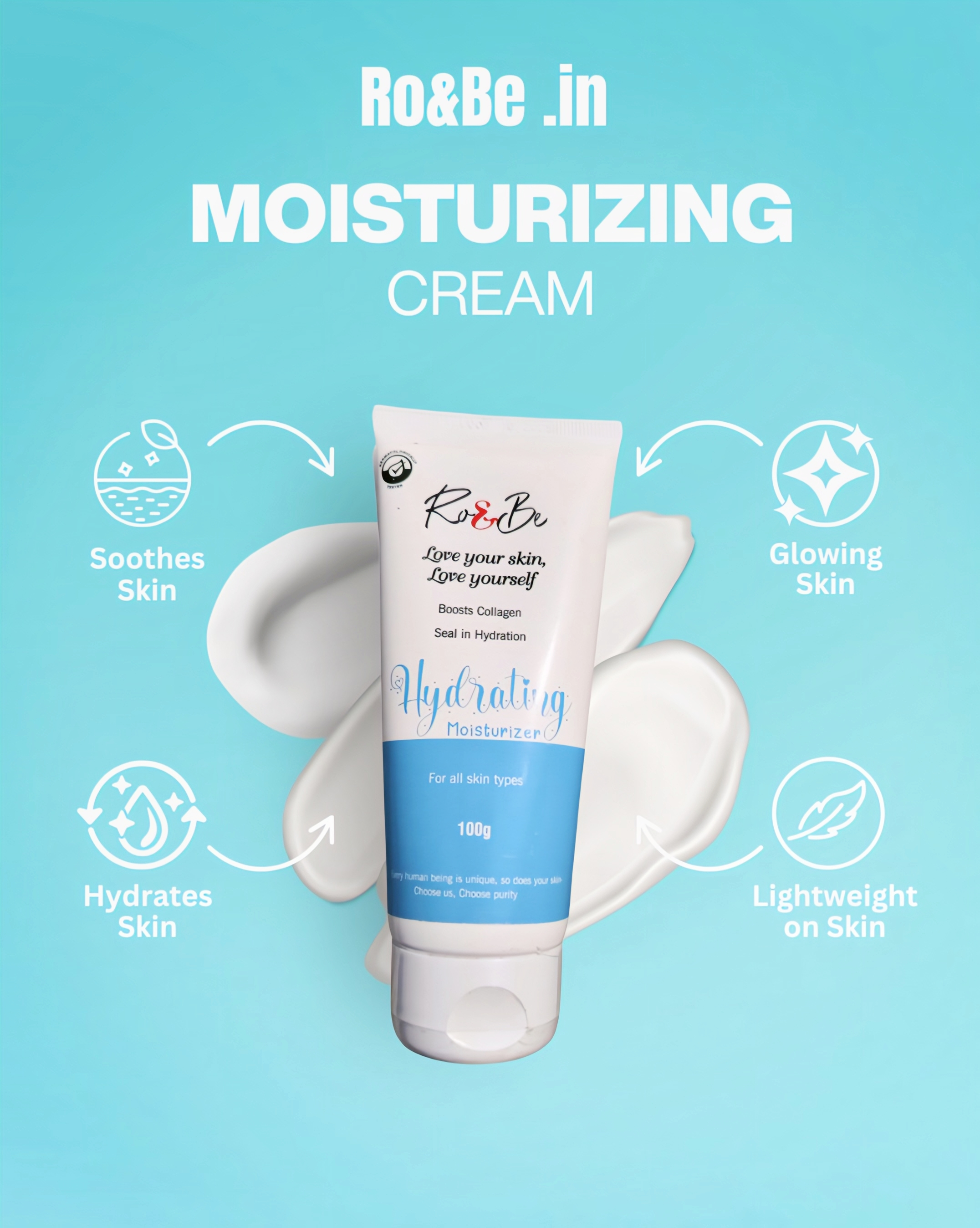 Quench your skin with Ro&Be’s hydrating moisturizer—lightweight, fast-absorbing, and packed with nourishing ingredients. It locks in moisture to keep your skin soft, supple, and glowing from morning to night.